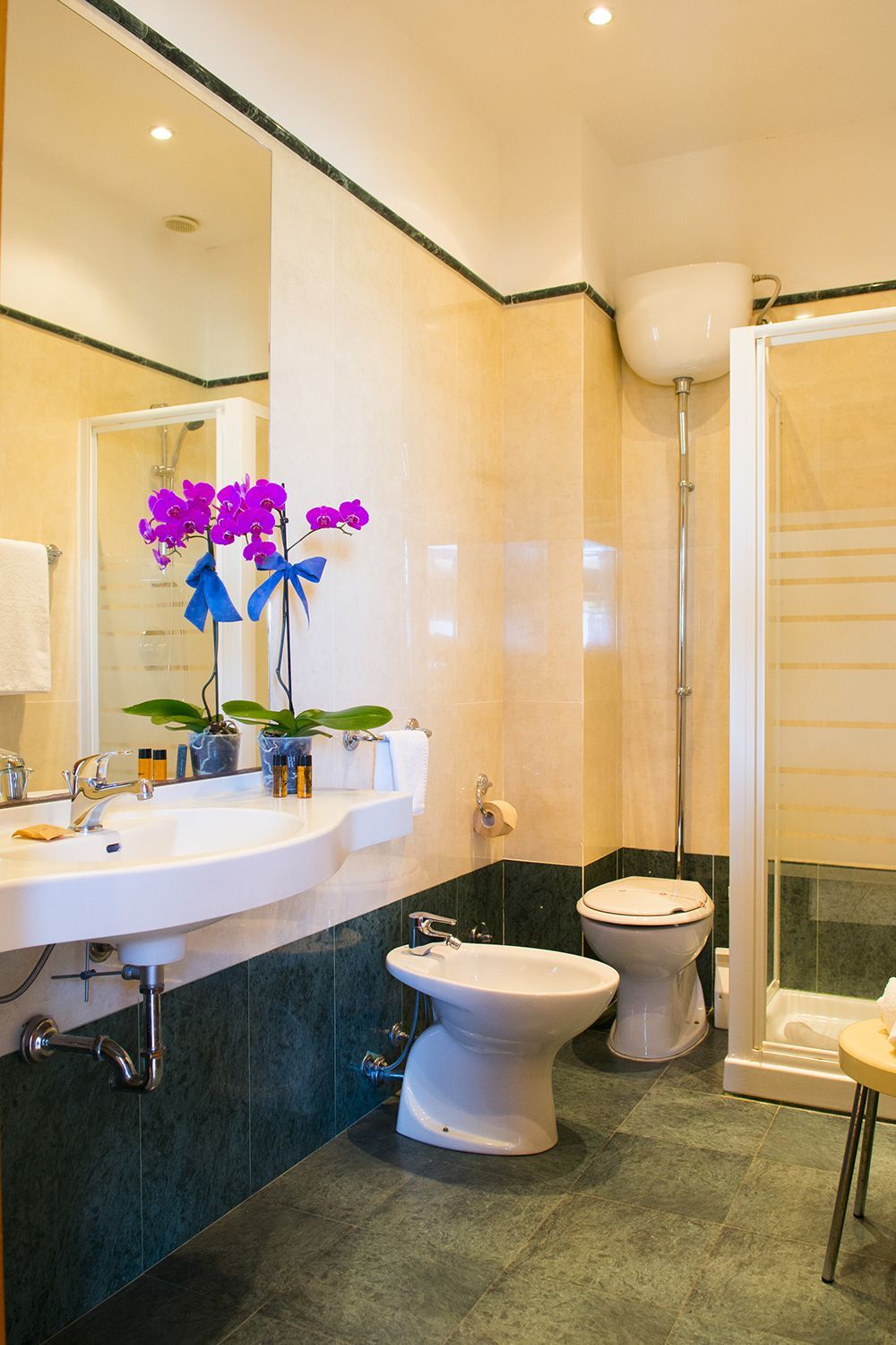 I bagni, spaziosi e funzionali, sono equipaggiati con doccia e/o vasca e asciugacapelli a parete, per garantirvi tutto il necessario per il vostro benessere quotidiano. La cura dei dettagli e la qualità delle dotazioni rendono ogni stanza un luogo ideale per rilassarsi dopo una giornata di esplorazione o di lavoro.