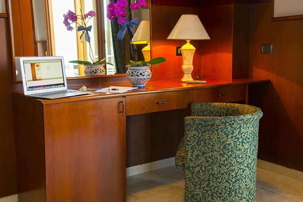 Le 120 camere dell'Hotel dei Pini sono caratterizzate da un arredamento moderno ed elegante, pensato per offrire il massimo comfort e soddisfare le esigenze di ogni ospite. Ogni camera è dotata di aria condizionata, TV, minibar e telefono con linea diretta, assicurando un soggiorno piacevole e rilassante.